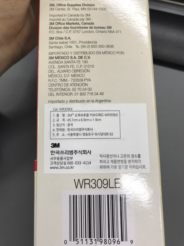 3M 손목보호용 키보드패드 WR309LE 논슬립 손목받침